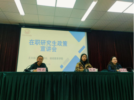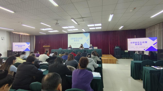 继续教育学院院长喻丽娜重点结合《教育部办公厅关于开展普通高等学校本科教学工作合格评估的通知》中本科办学要求教师队伍指标基本要求“专任教师中具有硕士学位、博士学位的比例≥50%”、“在编的主讲教师中90%以上具有讲师及以上专业技术职务或具有硕士、博士学位,并通过岗前培训。”等的要求,鼓励教师多措并举积极提升学位。同时,针对教师报考同等学力升硕存在的困惑、疑点集中进行了解疑答惑。