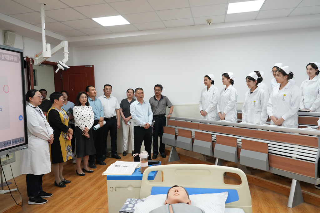 5月14日下午,党委书记李怀仁一行来到济南护理职业学院,实地参观实训室、产教融合基地、心理将康中心、中医药文化博物馆,并现场看望了我院“协同培优班”的50名学生和2名教师。