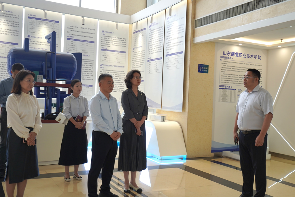 5月15日上午,党委书记李怀仁一行来到山东商业职业技术学院,实地参观科研大楼、智慧冷链物流实训基地、校史馆、商文化中心,参观数字营销系、文化创意系实训室,并开展座谈交流。