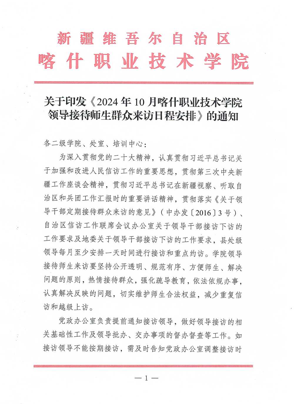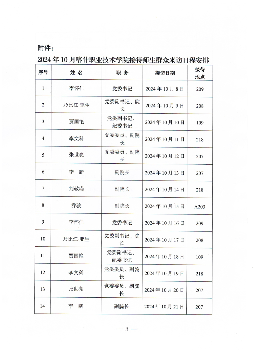 2024年10月领导接待来访日程安排