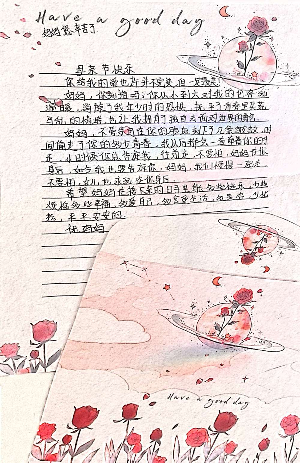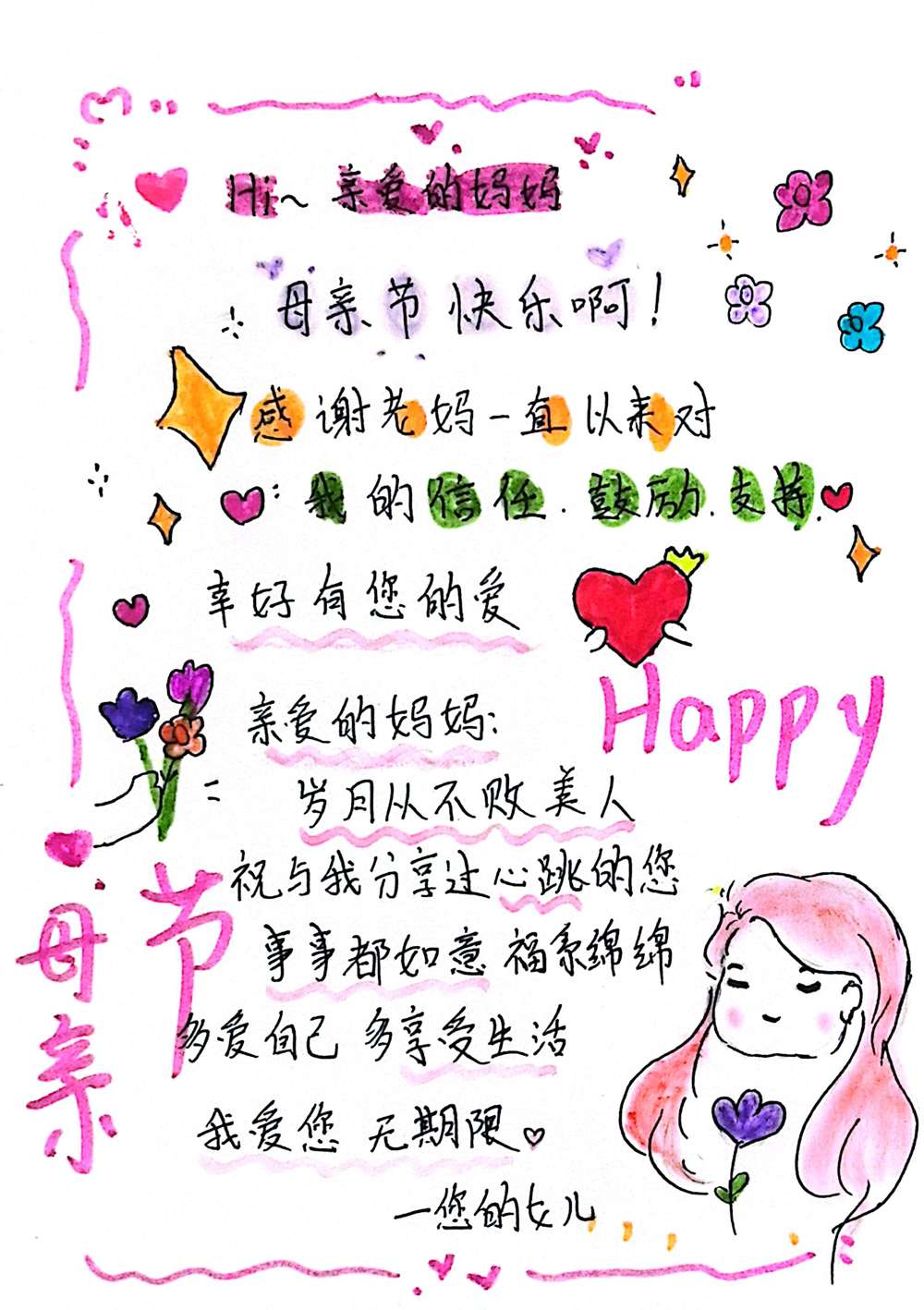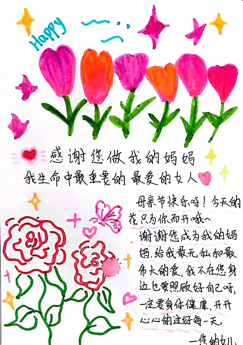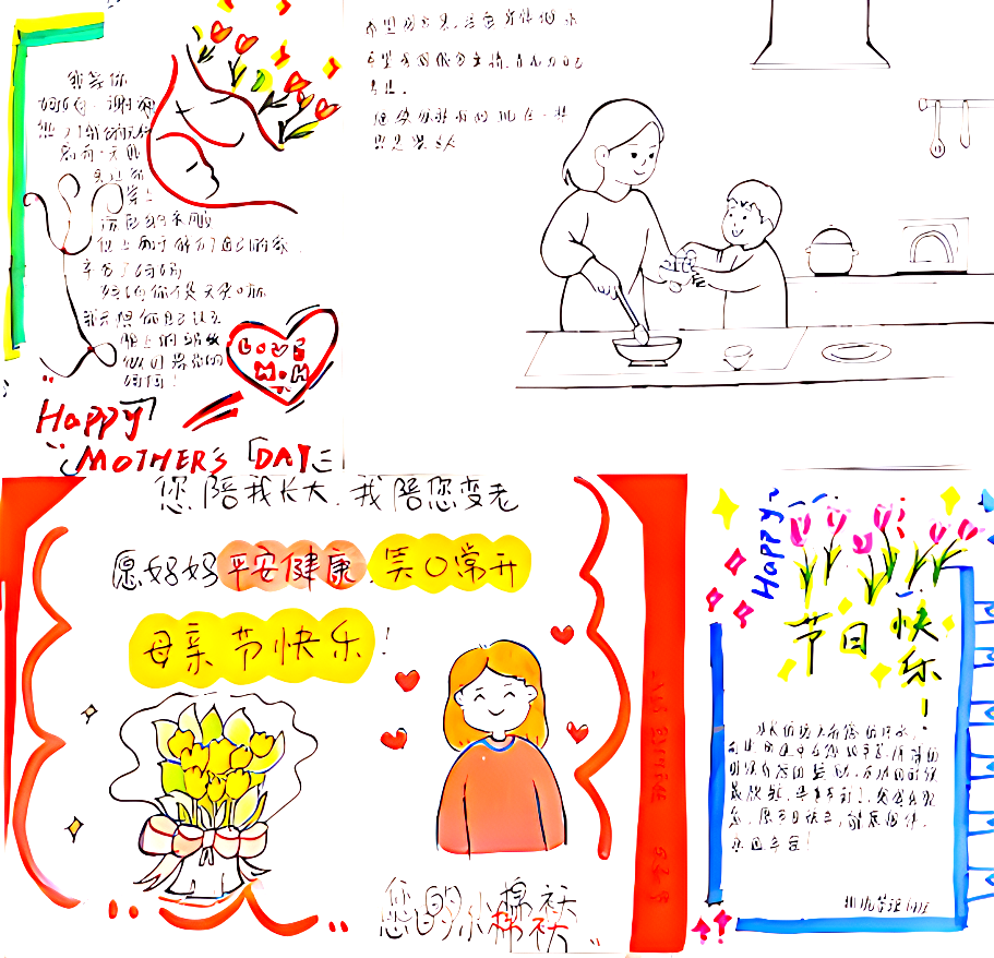 以下是部分学生作品,都表达着对母亲诚挚的爱: