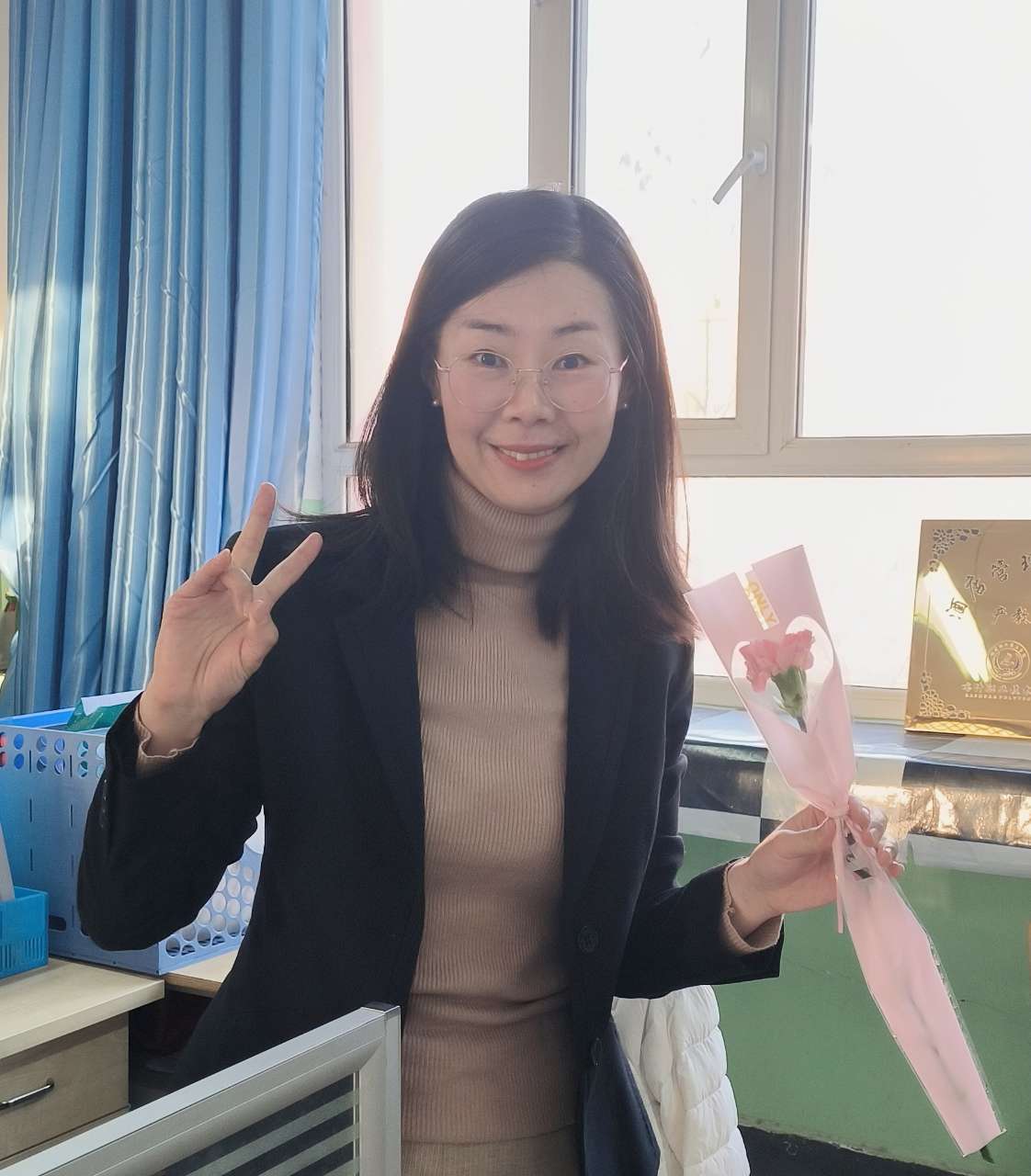 3月8日当天,党总支班子成员自费为大家准备了水果、鲜花,一大早收到美美的鲜花与礼物,老师们都露出了幸福、美丽的笑容。