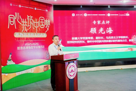 此次教学展示活动第一阶段五名中小学老师分别以卜天寿《论语·郑玄注》、青花瓷、花帽 、编钟、青铜器为载体,以铸牢中华民族共同体意识为主线,让文物发声,激发参会师生们的民族自豪感和自信心。第二阶段四名大学老师和一名博物馆讲解员分别选取交河故城、马家窑彩陶、鱼皮文化、伏羲女娲图为主题,展示了不同历史时期体现中华民族共同体意识的文物代表,使参会师生认识到铸牢中华民族共同体意识的重要性。教师展示后三位学生代表发言表示这场在博物馆里的思政课让他们获益良多,深刻理解了文物背后的中华民族共同体意识。最后由新疆大学马克思主义学院院长顾光海进行点评总结,对此次展示教师给予高度肯定,以文物为载体将思政小课堂与社会大课堂结合取得良好的育人效果。今后将继续依托各历史陈列馆、博物馆等场景,携手打造馆校联动的思政育人机制,纵深推进新疆大中小学思政一体化建设。
