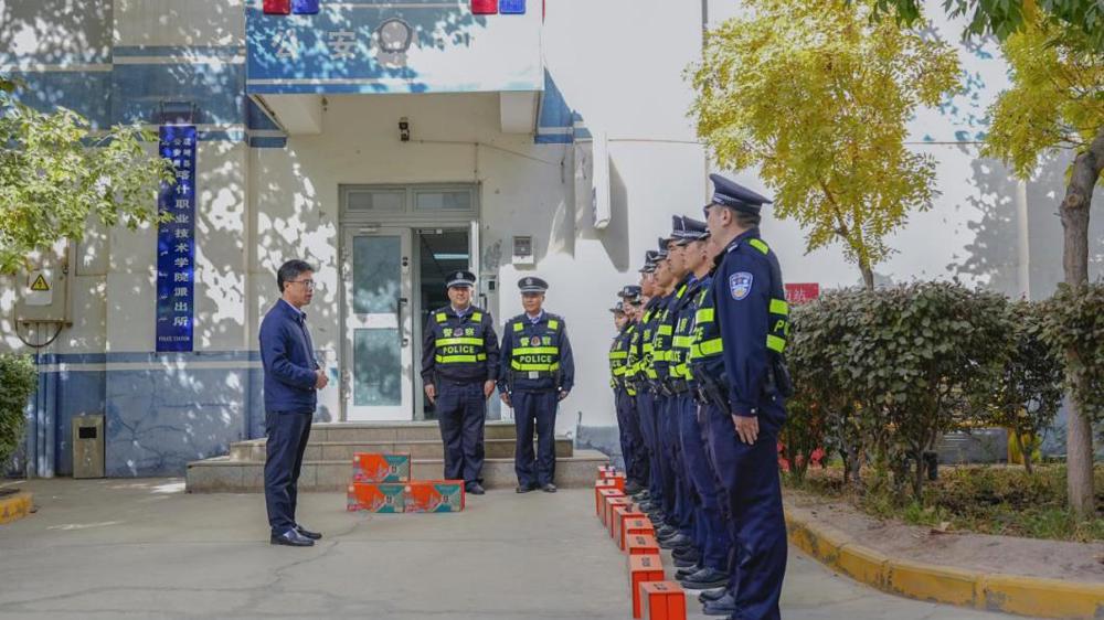 刘昌海高度肯定了派出所全体干警长期以来忠于职守、甘于奉献,牺牲个人休息和与家人团聚的时间,有力维护了校园安全稳定。他强调“安全是学院发展基石”,要求大家时刻绷紧安全弦,落实安保措施、加强巡逻排查,深化警校联动提升履职能力。