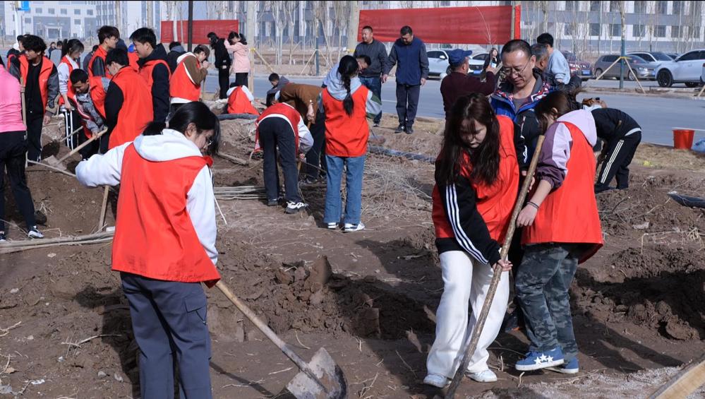 2024年3月12日,在BB贝博艾弗森原官方网站胡杨餐厅旁,院团委携手农学院开展“十年之约”植树活动。52名团员学生代表挥锹培土,种下100棵胡杨树苗,在树旁深埋“时间胶囊”,约定2035年启封查看成长答卷。