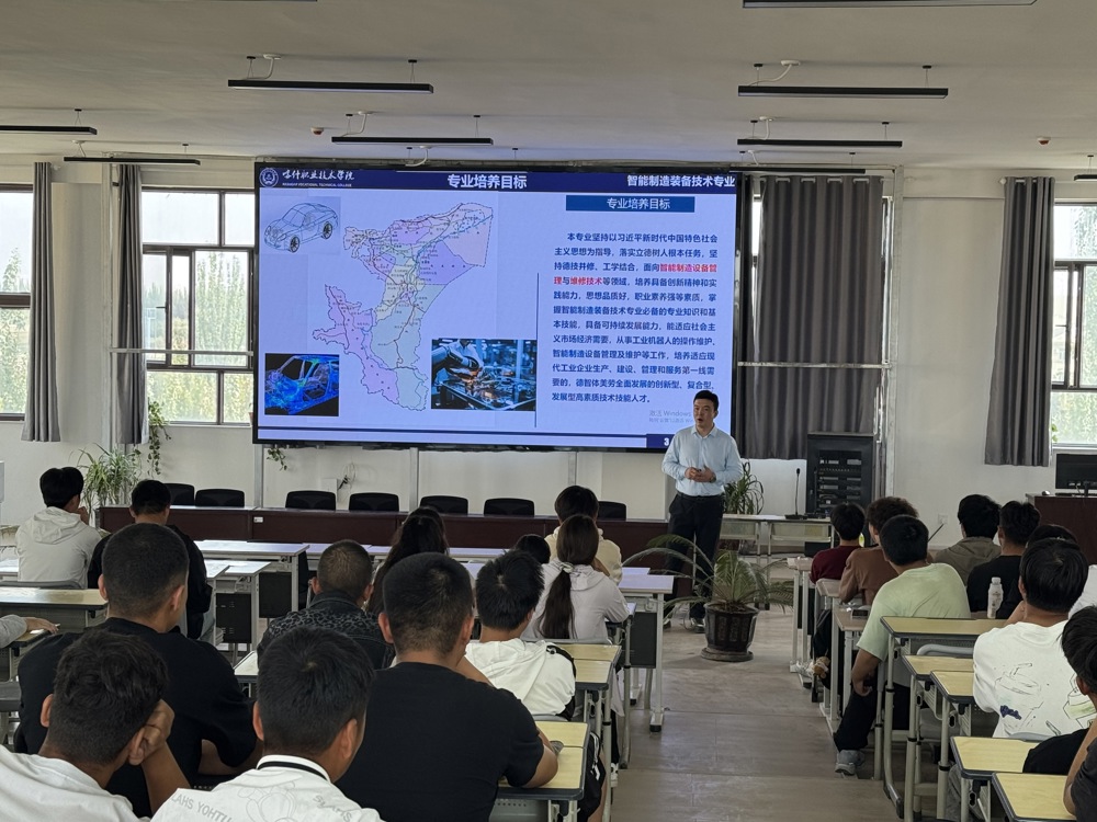 周文婷老师随后为同学们解读了机电一体化技术专业。她结合现代制造业实例,生动阐述了该专业的课程设置与人才需求,并特别鼓励新生培养创新思维,勇于探索实践。陈大鹏老师则聚焦于智能制造装备技术这一前沿领域,深入浅出地讲解了专业课程与实训环节。他期望同学们能充分利用学院优质实训资源,锤炼解决复杂工程问题的能力。宋玲安老师围绕新能源汽车技术的发展趋势与产业前景,详细介绍了该专业的培养方案与实训设施,激励同学们把握时代机遇,投身绿色能源事业。