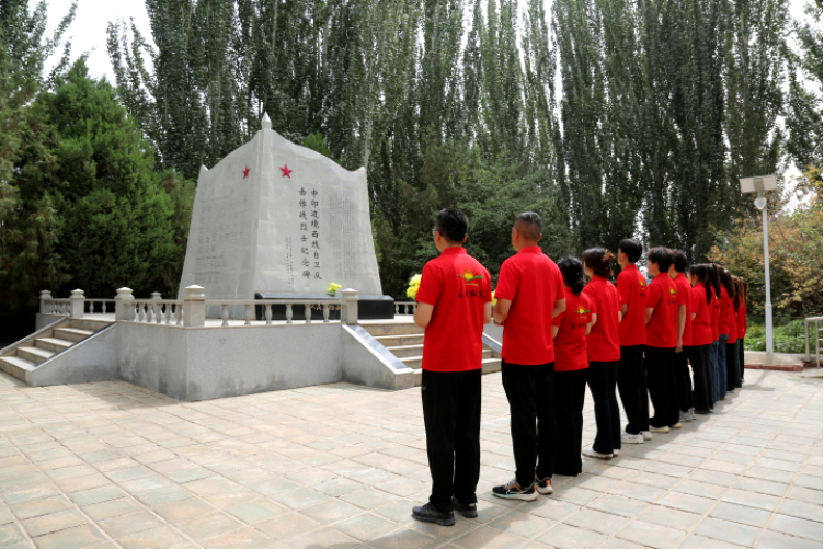 [图5:队员在叶城烈士陵园向革命先烈敬献花圈,缅怀英烈事迹]