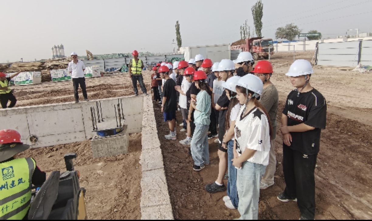 在国家大力推进城市更新战略与自治区积极响应城市更新行动的背景下,为进一步推动产学研深度融合,强化实践教学环节,提升专业实践能力,建筑与市政工程学院于2025年9月4日至8日期间,将2024级建筑工程技术和工程造价专业近200名学生的课堂,直接搬到了喀什广建集团在我校承建的宿舍楼及体育场项目施工现场,开启了一场沉浸式的实践学习之旅。