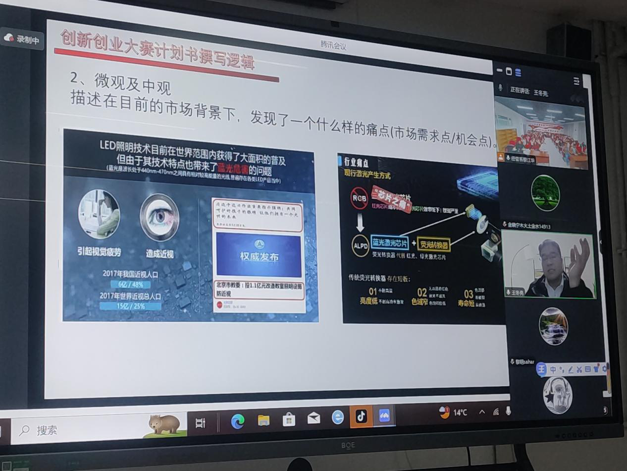 接着王冬亮导师针对双创大赛计划书的撰写要点、结构布局、内容要求等方面进行了深入剖析,并分享了撰写计划书的成功案例,为学生提供了宝贵的写作经验。